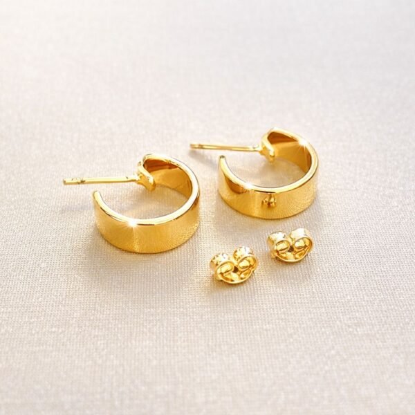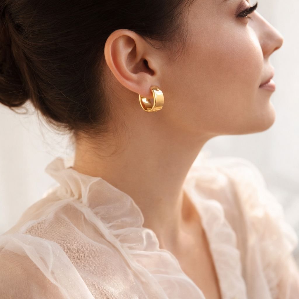 Sofisticado na medida certa, o Brinco Argola CHER Essência Dourada valoriza o brilho do ouro em um design moderno e atemporal, ideal para composições elegantes em qualquer ocasião.